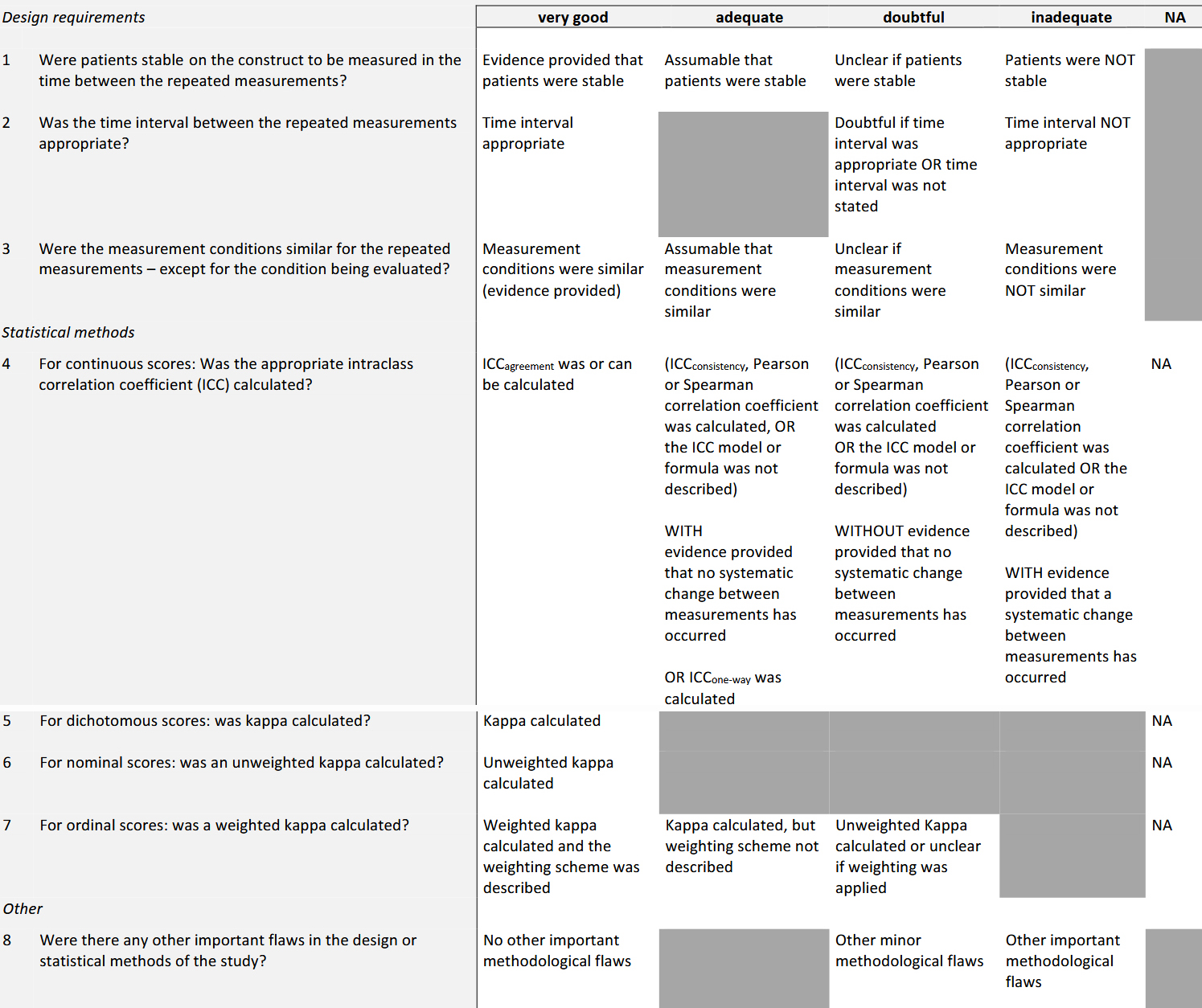 3.5 Using COSMIN Box 6 (Reliability), score all eight items for Hansen et al. and justify each rating.